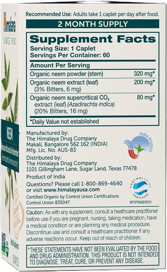 Organic Neem Herbal Skin Supplement, Mild Acne Supplement, Clear Skin, Purifying, 60 Plant-Based Caplets