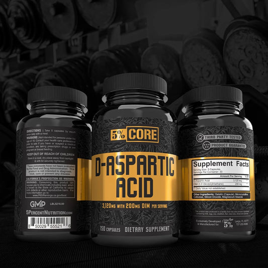 Core D-Aspartic Acid Supplement (DAA) with Natural Diindolylmethane (DIM) | Testosterone and Estrogen Regulation Support for Men | 30 Servings / 150 Capsules